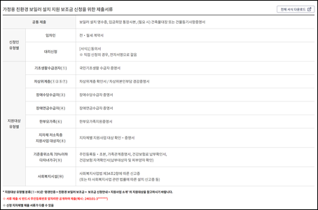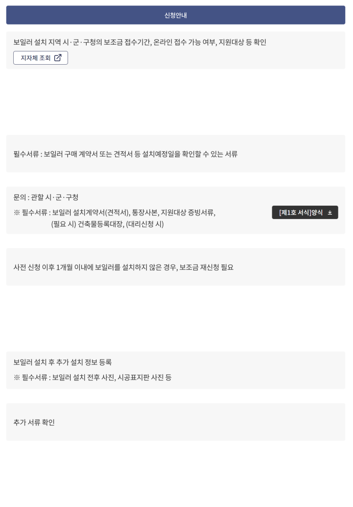 - 지원 신청 제한 사항: 친환경 보일러 설치가 불가능한 경우 지원이 제한될 수 있으니 사전에 가능한지 여부를 반드시 확인하시기 바랍니다.