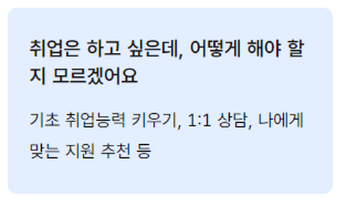 국민취업지원제도 홈페이지에서는 이용자들이 자주 찾는 서비스를 한눈에 확인할 수 있도록 안내하고 있습니다. 대표적인 서비스로는 다음과 같습니다: