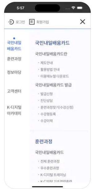 고용노동부 HRD-Net 및 출결관리 아이폰